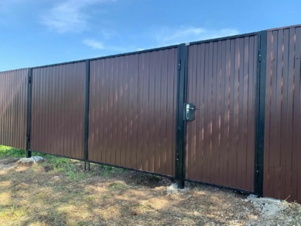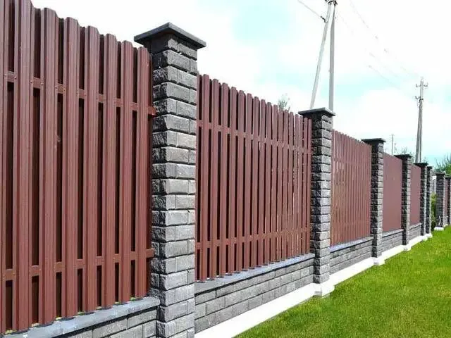 Самый распространённый тип заборов, который используется сейчас, это металлический евроштакетник. Его основные преимущества оптимальное соотношение цена и качество, долговечность, хорошая проветриваемость участка, эстетичность и монтируется просто и легко.